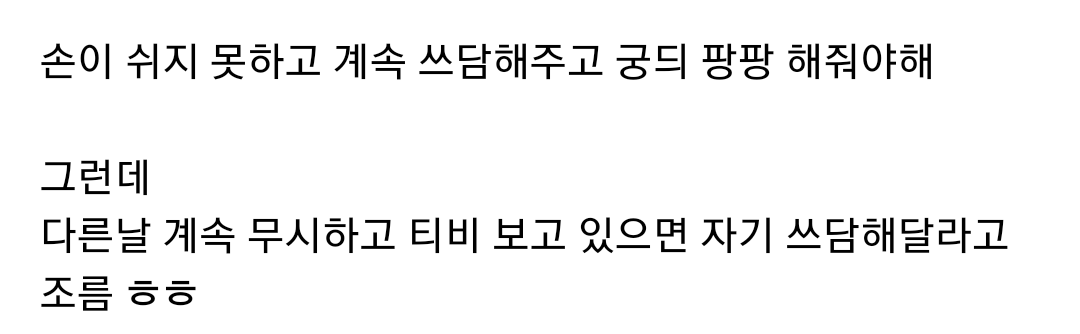 It’s cute….ㅋㅋㅋ My cats come next to me when I’m lying down and ask for more if I stroke my head, but it’s so cute that I can’t sleep.