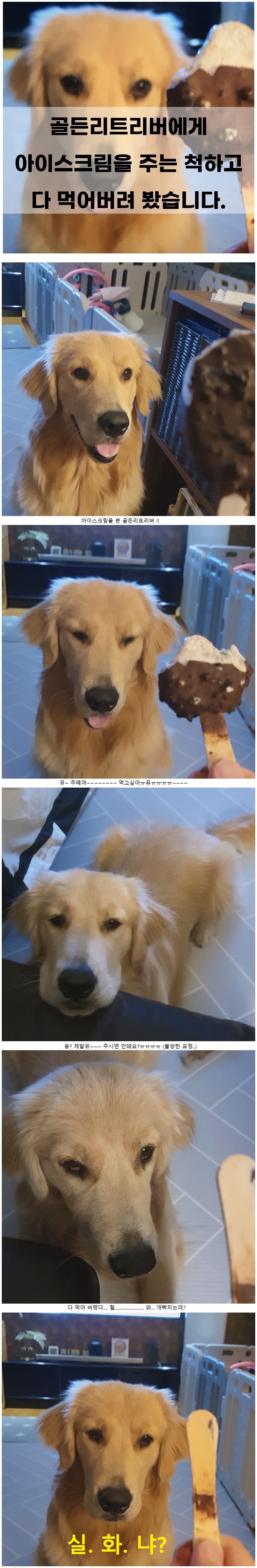 I tried all the ice cream in front of the dog.
